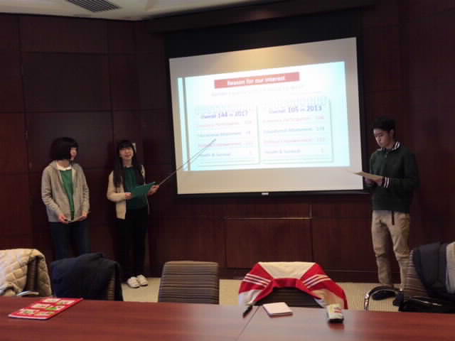 お知らせ 2018.03.09 お知らせ 3月11日~20日ボストンスタディツアー 3月11日~20日ボストンスタディツアーに生徒12名が参加します。 ★印箇所で英語プレゼンテーションを実施します。 11日 上田→成田→ボストン 12日 ★ルケッツ設計社工房(農業と都市の共存) 13日 ★ハーバード幹細胞研究所(長野県の健康寿命) 14日 ブルックラインハイスクール訪問(日本語クラス) 15日 ★マサチューセッツ工科大学メディアラボ(上田市のスマート交通網) 16日 ★ハーバードケネディスクール(女性の活躍と国際外交) 17日 ボストンフィールドワーク 18日 ボストンフィールドワーク 19日 ボストン→空路→成田 20日 成田→上田 前の記事へ 一覧へ戻る 次の記事へ TOP すべてのお知らせ お知らせ 3月11日~20日ボストンスタディツアー
