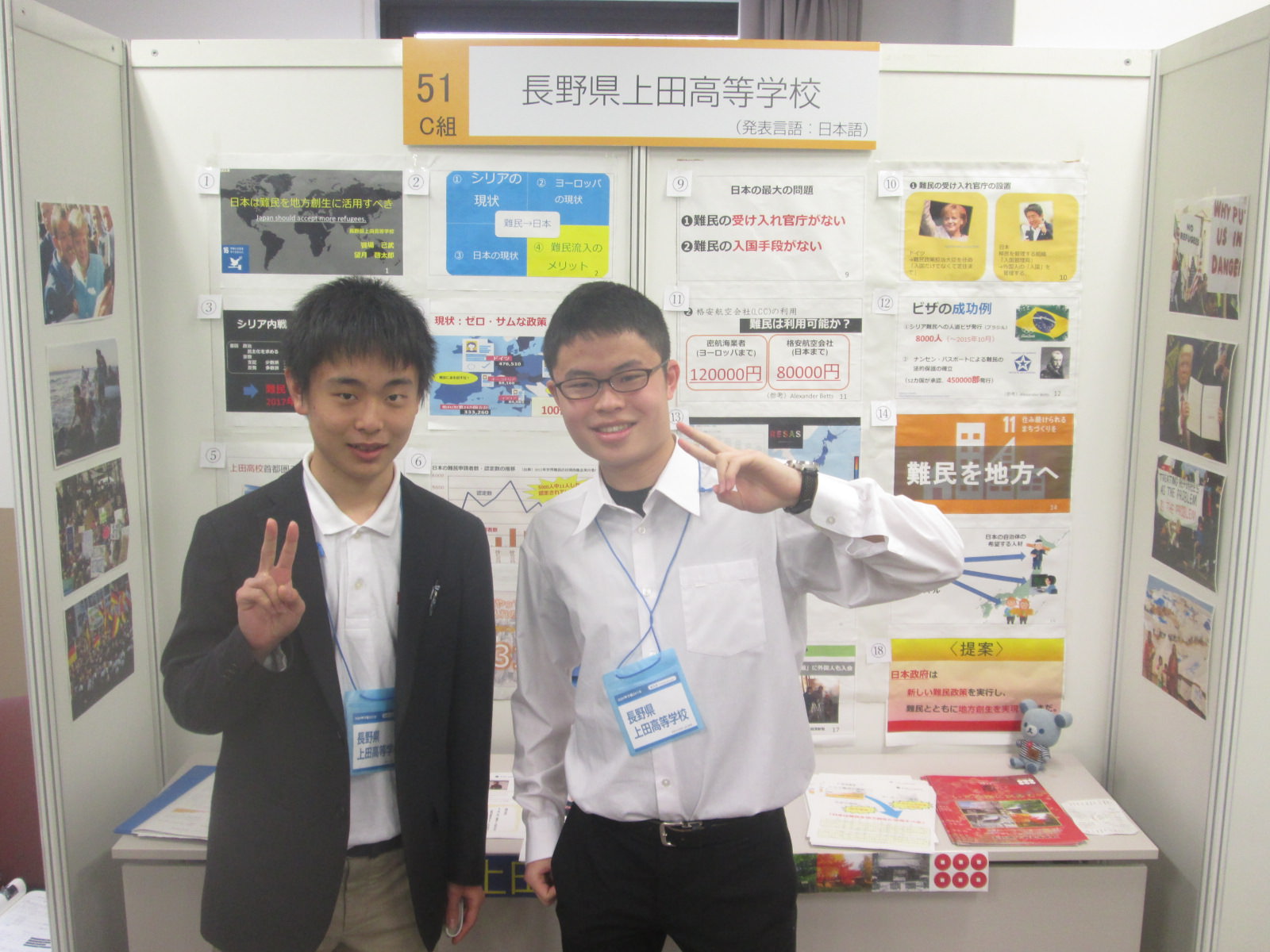 お知らせ 2018.03.26 お知らせ班活動 3月24日(土)SGH甲子園 3月24日(土)第3回SGH甲子園が関西学院大学で開催されました。 本校より2名の生徒が日本語ポスターセッション部門に参加しました。 テーマ「地域創生のため日本は難民を受け入れるべき」 5分発表+5分質疑応答をつうじて参加者とディスカッションできました。 前の記事へ 一覧へ戻る 次の記事へ TOP すべてのお知らせ お知らせ 3月24日(土)SGH甲子園