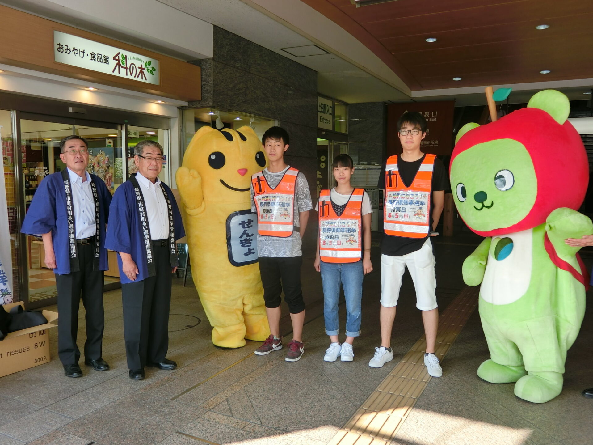 8月5日(日)の長野県知事選挙投票日を目前にして,本校生徒会役員を中心とした生徒たちが,3日(金)朝,上田駅お城口で,県選挙管理委員会の皆さんとともに,投票率アップに向けた啓発活動に取り組みました。