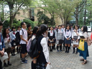 お知らせ 2018.09.14 お知らせ 9月11日(火)~12日(水) 2学年首都圏フィールドワークを行いました 本校2学年は、各自の興味・関心のある学問分野などに基づいて設定された10コースに分かれ、大学見学の後、大学教授やそのゼミに所属する大学生の方々と講義やワークショップを通して交流したり、研究機関・企業・専門施設で講義等を通して研修したりするなど1泊2日の日程で首都圏フィールドワークを行いました。この研修のなかで、大学生の方々が大学で学ぶことを通して身につけられた物の見方・考え方に直接触れることで大いに学問的な刺激を受けることができました。また、コースごと本校生が課題研究のプレゼンを行い、専門家から貴重な助言をいただくことができました。この2日間で学んだことをこれからの探究活動や進路等に活かしていきたいと考えています。 前の記事へ 一覧へ戻る 次の記事へ TOP すべてのお知らせ お知らせ 9月11日(火)~12日(水) 2学年首都圏フィールドワークを行いました