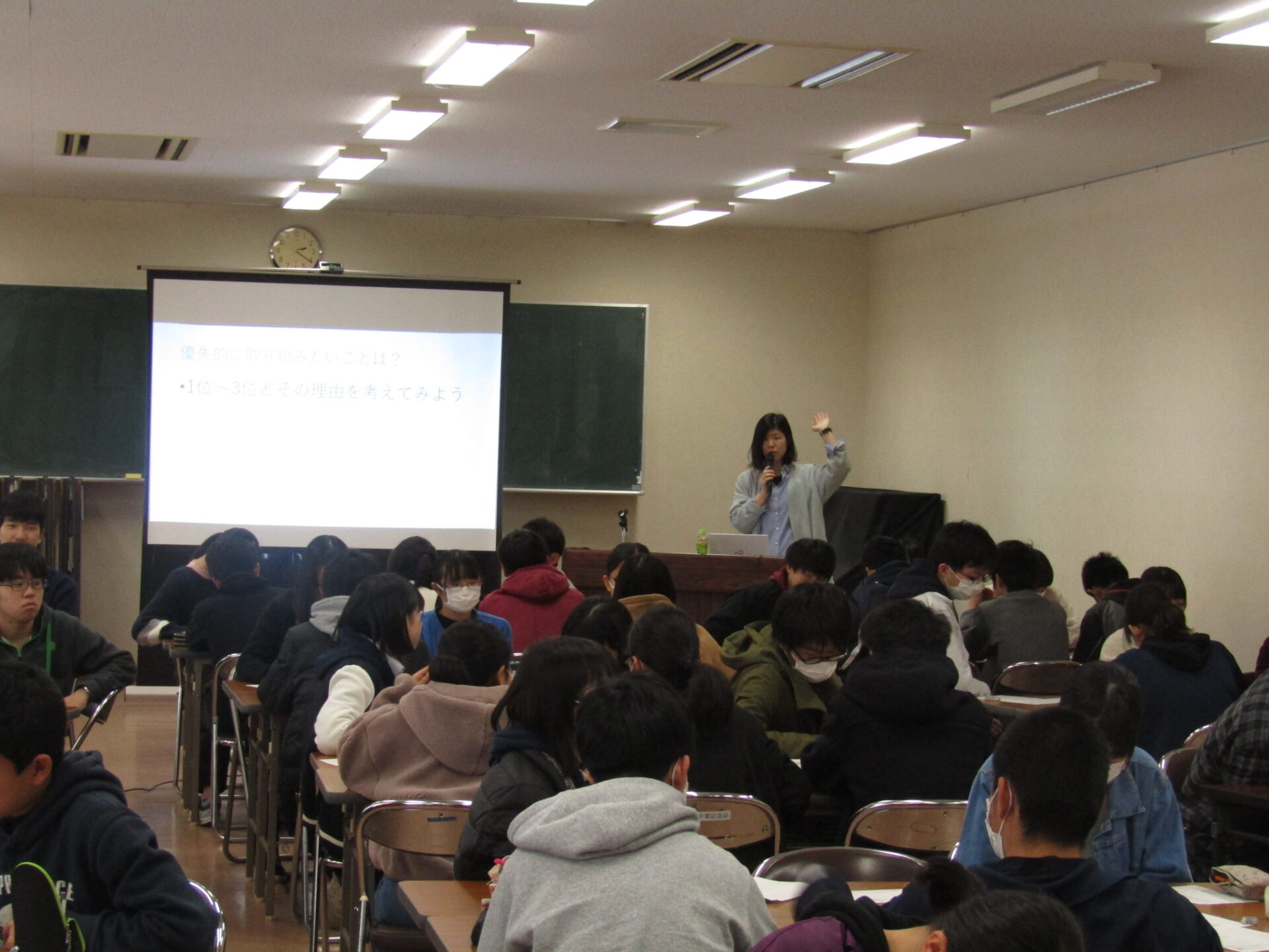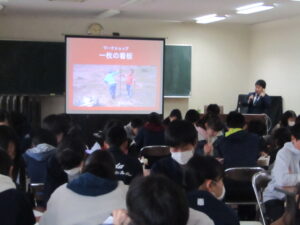 お知らせ 2019.02.25 お知らせ 2月21日(木)~22日(金)JICA出前講座を行いました 1年生GSⅠの授業でJICA出前講座を行いました。21日は、上田市立二中教諭小林実季先生を講師に、1・4・5・8組の生徒が、先生の青年海外協力隊としてカンボジアで活動した話を聞いた後,ワークショップを行いました。22日は、坂城高校教諭小木曽一希先生を講師に、2・3・6・7組の生徒が、モンゴルでの教師海外研修についての話を聴いた後、ワークショップを行いました。この授業で学んだことを活かし、今後もSGHの学習活動を通して国際理解についての考えを深めていきたいと思います。 前の記事へ 一覧へ戻る 次の記事へ TOP すべてのお知らせ お知らせ 2月21日(木)~22日(金)JICA出前講座を行いました