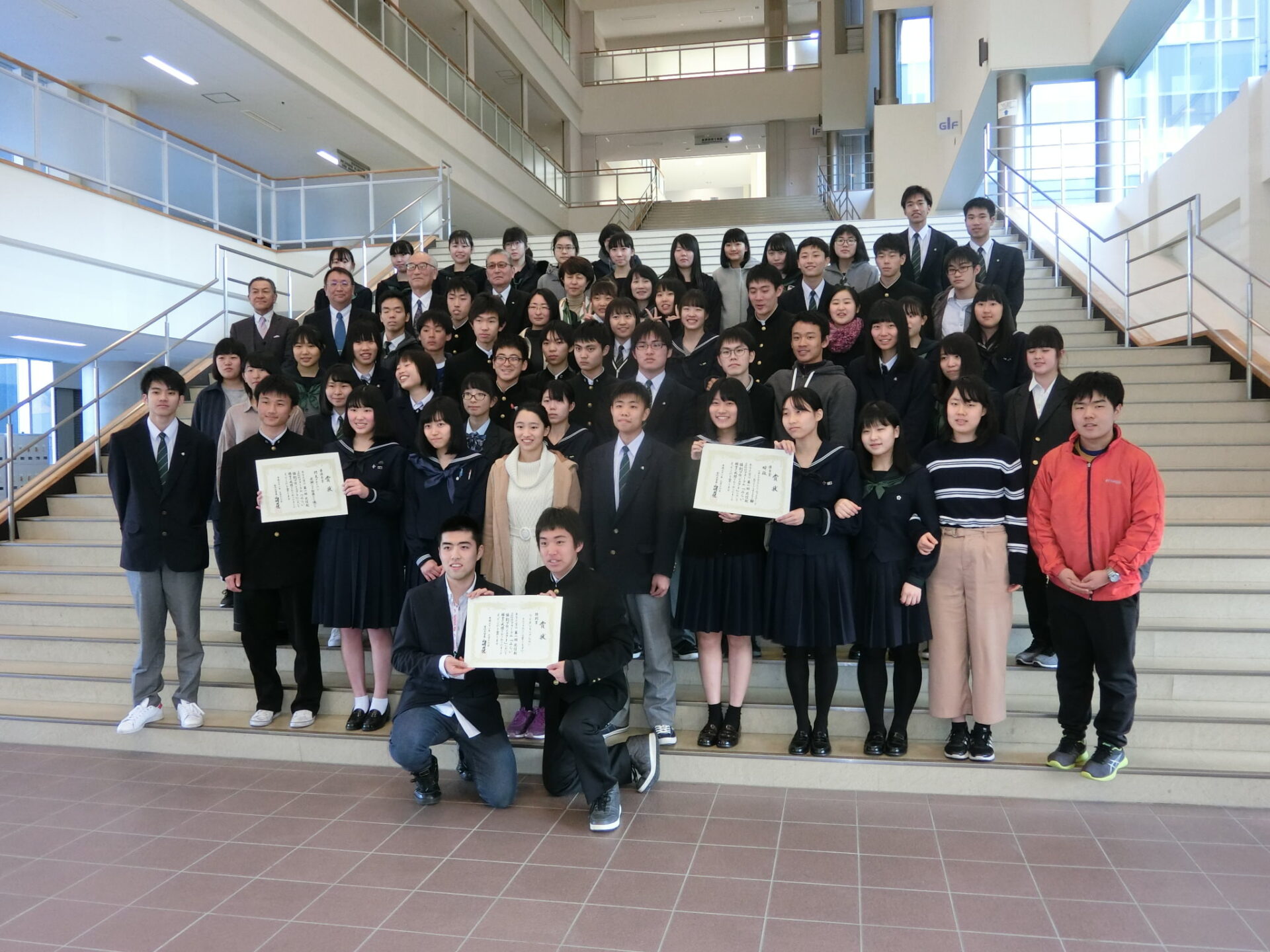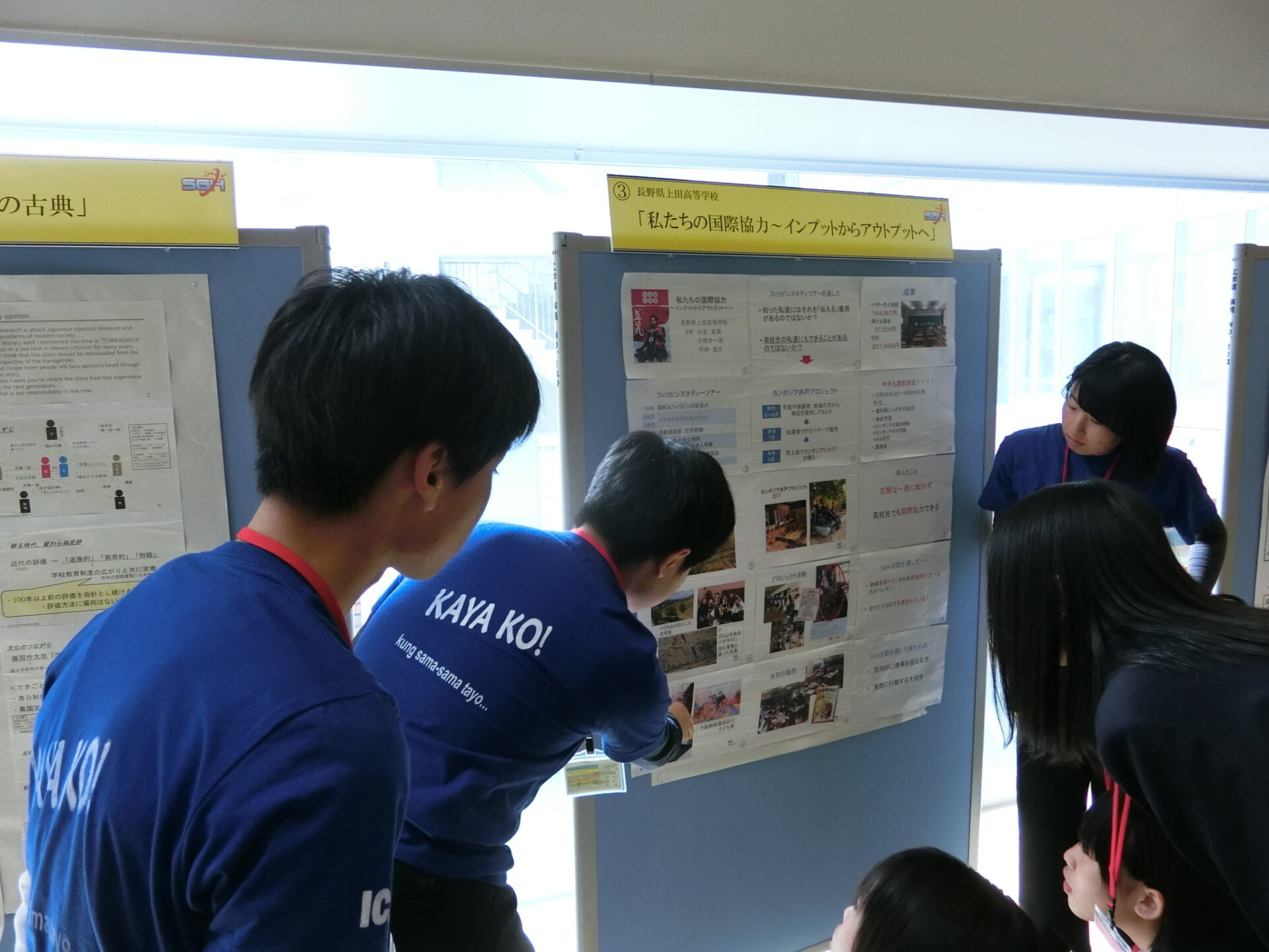 石川県青少年総合研修センターと金沢大学角間キャンパスで開催された第1回北信越SGHフォーラムに、本校2年生6名が参加しました。第1日目と第2日目の午前にかけては「みらい協創プロジェクト」として、他の6校の生徒とともに8つの混合チームを結成し、「高校生活の中で感じる“もったいない”を解決する提案を」という課題に挑み,その解決策を競い合いました。また、第2日目の午後には各校のポスターセッションが行われ、本校からは「私たちの国際協力~インプットからアウトプットへ~」と「現代社会を通して考える日本の古典」の2作品が掲示され,生徒たちは熱心に発表に取り組みました。北信越地区のSGH高校生徒と競いつつ交流を深める、意義ある企画となりました。