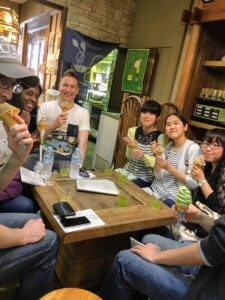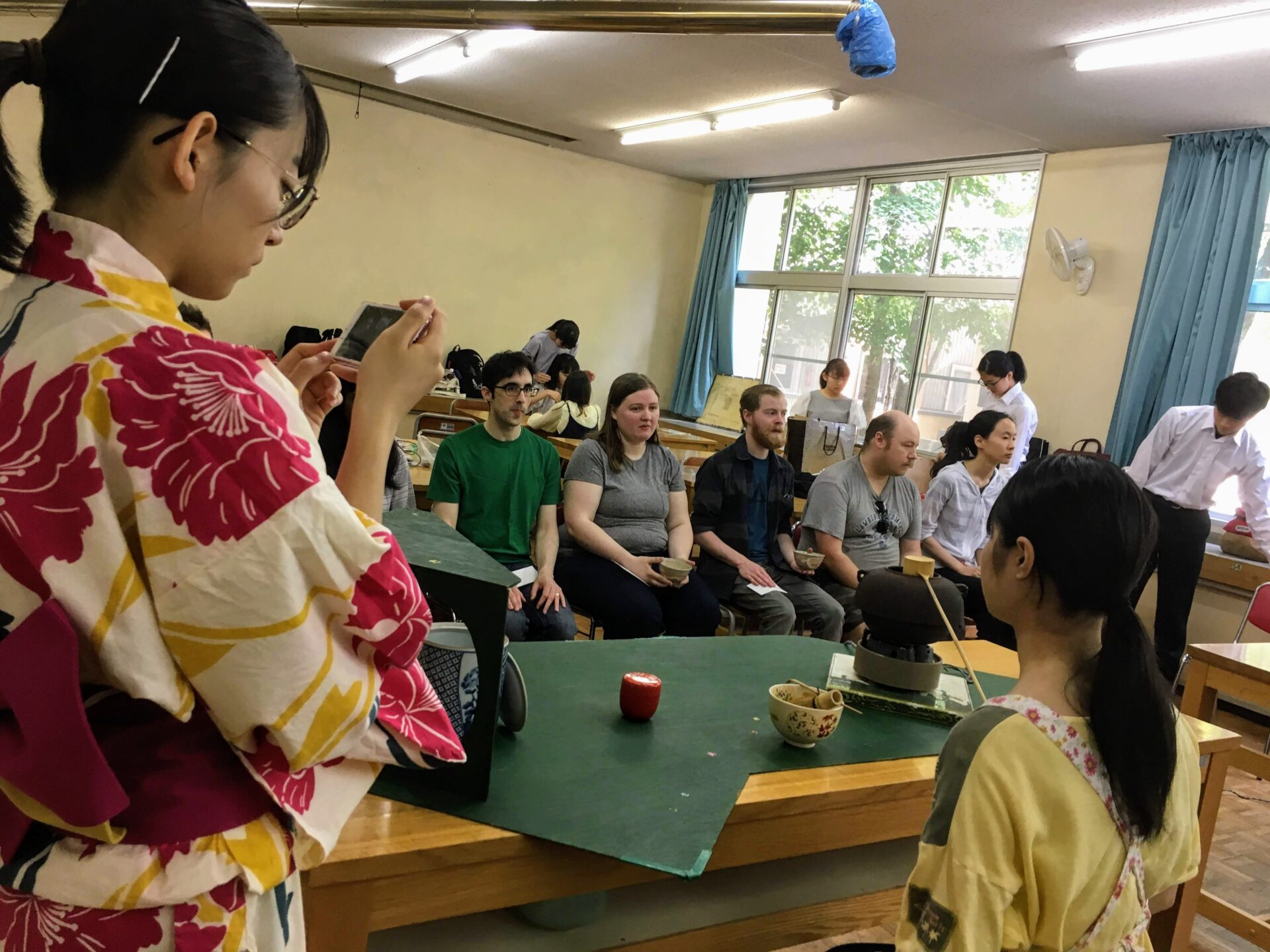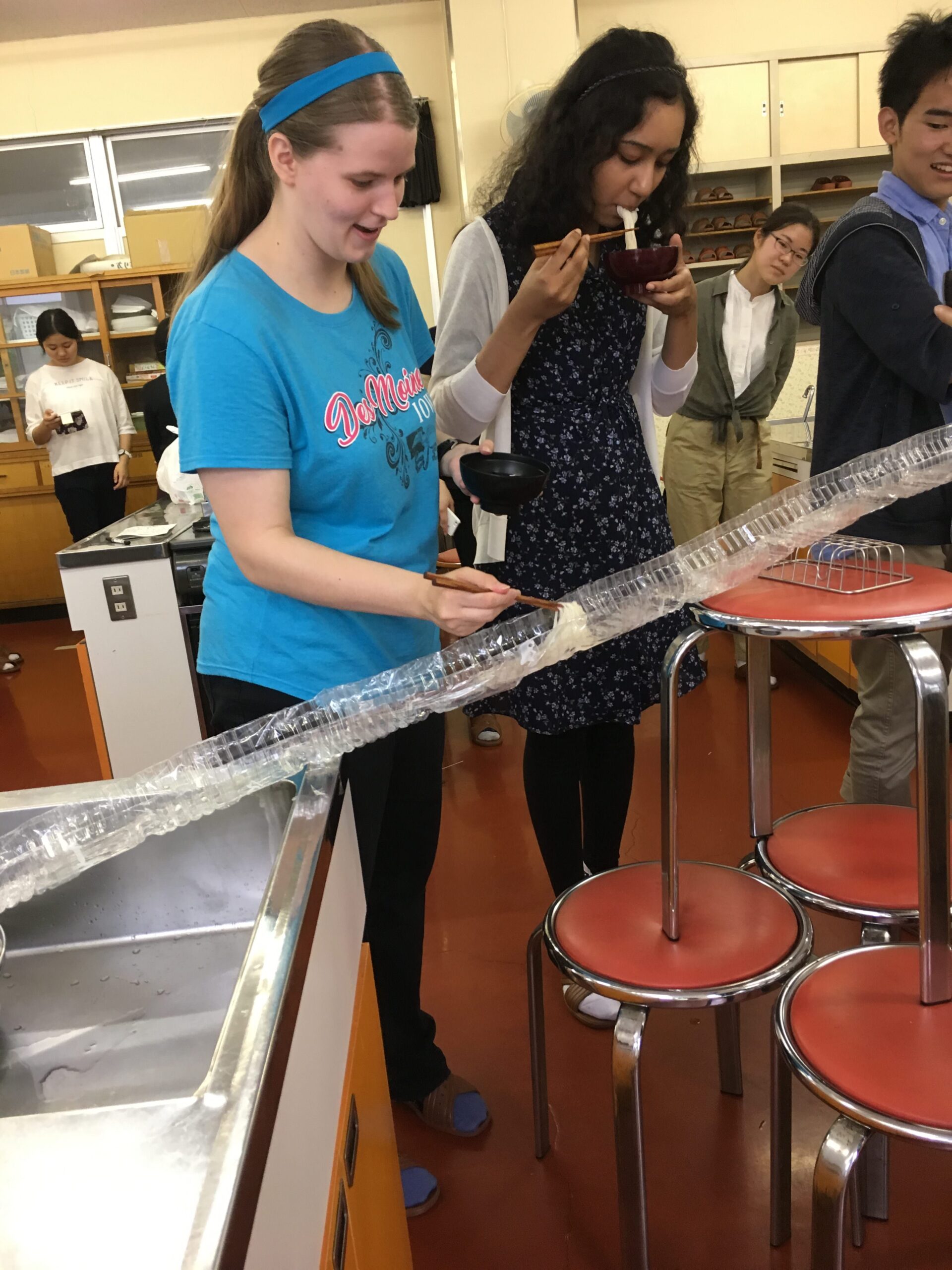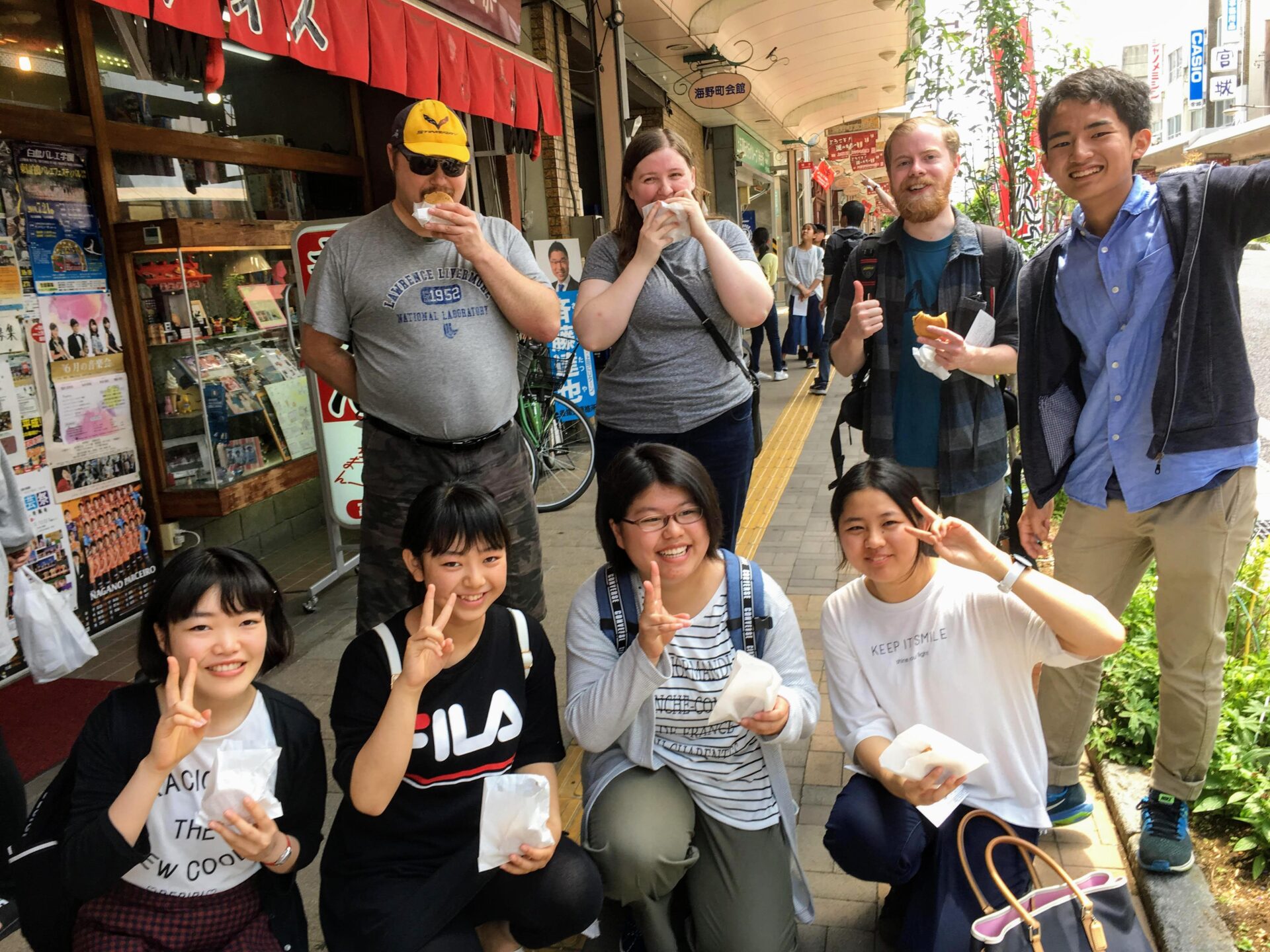 お知らせ 2019.06.25 お知らせ 6月23日(日)英語班が「フード・ツアー」を行いました 6月23日、英語班は、東信地区小中高校配属のALT10名を招いて、上田市内のお菓子店巡りと日本食を楽しむ恒例の「フード・ツアー」を開催しました。今年は上田高校茶道班の協力を得て、抹茶のお点前も体験。お菓子店巡りでは自慢焼きや抹茶ソフト、ほうじ茶ソフトなどを堪能しました。昼は、ペットボトルで作った樋を使って「流しそうめん」。食後、食べ物で築き上げた絆で30分以上もそれぞれ個々に英語で交流。素晴らしい上田食紹介と英語学習となりました。 フードツアー19 自慢焼き堪能 抹茶ほうじ茶ソフト堪能 抹茶堪能 流しそうめん 前の記事へ 一覧へ戻る 次の記事へ TOP すべてのお知らせ お知らせ 6月23日(日)英語班が「フード・ツアー」を行いました