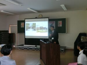 開会行事では来賓として長野県総合教育センター所長 飯島由美様、佐久大学理事長 盛岡正博様、長野県立大学教授 大室悦賀様などが紹介された後、講師の瀧澤郁雄先生(国際協力機構(JICA)人間開発部次長)による記念講演「世界の健康を守る:グローバルヘルスと国際協力」が行われました。本校OBでもある先生が、アジア・アフリカ地域での感染症の根絶に取り組まれた貴重な報告で、高校生への熱いメッセージとなりました。