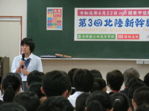 6月22日(土)、本校を会場に第3回北陸新幹線サミット(関東甲信越北陸地区高校課題研究発表会)が、JICA(国際協力機構)とJR東日本長野支社の後援を得て、開催されました。県外からは筑波大学附属坂戸高等学校、東京学芸大学附属国際中等教育学校、新潟県立国際情報高等学校、金沢大学附属高等学校、石川県立七尾高等学校の5校、県内からは飯山、長野、篠ノ井、屋代、野沢北、本校の6校で、計11校、のべ100余名の高校生が参加しました。