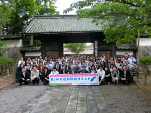 閉会行事では各分科会からの報告が行われ、「他校の高校生や他の地域の先生方と話すなかで視野が広まった」、「多くの人とディスカッションして世界が広まった」、「他校の高校生のプレゼンテーションのうまさに驚いた」、「世界のなかで様々な価値観や教育があるなかで、どうしたら多様性を認め合えるのか、考えさせられた」といった感想が発表されました。本校生徒代表のお礼の言葉、廣田昌彦校長のまとめの後、最後に参加者全員で古城の門の前で記念写真を撮りました。