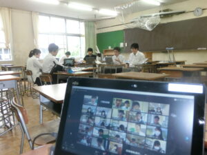 6月13日(土)、第4回北陸新幹線サミット(関東甲信越北陸地区高校課題研究発表会)が、JICA(国際協力機構)とJR東日本長野支社の後援を得て、開催されました。例年は本校を会場に開催していましたが、今年度は新型コロナウイルス対策のため、web会議アプリ「zoom」を活用してのオンライン開催となりました。県外からは筑波大学附属坂戸高等学校、東京学芸大学附属国際中等教育学校、新潟県立国際情報高等学校、金沢大学附属高等学校、石川県立金沢泉丘高等学校、石川県立七尾高等学校の6校、県内からは松本県ヶ丘、長野、長野西、篠ノ井、屋代、上田染谷丘、松本深志、伊那北、軽井沢、本校の10校で、計16校がzoomに接続し、のべ50余名の高校生が参加しました。