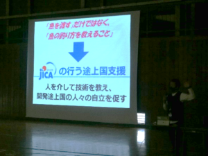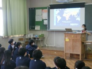 お知らせ 2020.10.13 お知らせ 10月8日(木)人権教育を行いました 1年生はワークショップ「世界が百人の村だったら」をクラス単位で実施し、先輩ファシリテーターのリードのもと、世界の貧困問題や食糧問題、識字教育などの重要性を実感しました。その後の全体会ではJICA長野デスクの竹内岳さん、NPO法人ICANの直井恵さんに講演していただきました。お二人とも発展途上国支援の経験を踏まえ、グローバル課題の深刻さやSDGsに取り組むことの重要性を指摘されました。 2年生は、来月以降の台湾とのオンライン高校交流に向けて、日本と台湾間の歴史を描いた映画「湾生回家」を鑑賞しました。 前の記事へ 一覧へ戻る 次の記事へ TOP すべてのお知らせ お知らせ 10月8日(木)人権教育を行いました