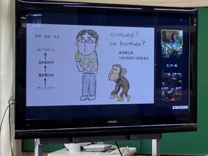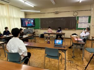 コロナ禍のなか、オンライン会議システムを用いて先生のご自宅と本校各HRをつないでの開催となったことが悔やまれますが、終了後の質疑応答や座談会の場でも、佐倉先生は談論風発、生徒の疑問や進路、課題研究の相談に熱心に答えて下さいました。