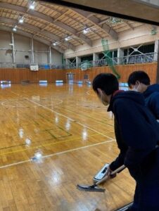 教室廊下、体育館のワックスがけについては、令和4年8月19日(金)に普通教室、9月16日(金)に普通教室等の廊下、 9月30日(金)に定時制教室、体育館については12月30日(金)にそれぞれ実施しました。実施にあたっては、事前に床のクリーニングを清掃時に実施し、ワックスがけ当日には清美委員、定時制生徒が、樹脂ワックスを塗布しました。
