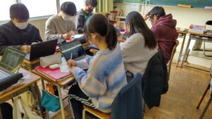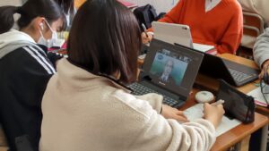 コロナ禍のなか,講演はオンライン会議システムZoomを活用して行われました。生徒たちは自分のタブレットPCを活用して視聴,発表し,その過程でICT技術も着実に進歩していました。多文化共生をテーマに課題研究に取り組む生徒も一定数おり、生徒から質問が積極的に出されたほか、自らと関係する問題として捉え、「やさしい日本語」の活用、身振り手振りのコミュニケーションの使用などの提言を考える姿が印象的でした。