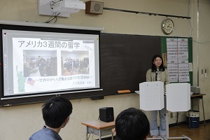 助言者の県教委学びの改革支援課高校教育指導係指導主事高野芙美先生からは,各研修や留学体験の中で、「日本の当たり前は世界の当たり前ではない」と気付けたことに意義があり、その事について考えることが、国際協力の第一歩であるとご助言を頂きました。