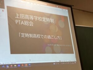 お知らせ 2023.05.18 お知らせ 5月13日(土)定時制のPTA総会が行われました。 全体会では、ライセンスアカデミーの田野裕也先生に「定時制高校での過ごし方」という演題でご講演をいただきました。保護者の皆様も熱心に聞いておられました。 学校の様子をお伝えしたり、学級PTAでお話をしたり学校の様子をいっそうご理解いただける機会となりました。 前の記事へ 一覧へ戻る 次の記事へ TOP すべてのお知らせ お知らせ 5月13日(土)定時制のPTA総会が行われました。