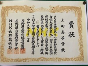 お知らせ 2023.07.23 お知らせ 混声合唱班が大会で入賞しました。 混声合唱班が、7月17日に行われた第37回長野県学校合唱大会県第90回NHK全国学校音楽コンクール高等学校の部長野県大会で銅賞を受賞したとのことで、報告に来てくれました。本校の上位入賞は久しぶりの快挙だそうです。現在19名で活動中とのこと、そういえば松尾祭のコンサートも大入りでしたね。おめでとうございます! 前の記事へ 一覧へ戻る 次の記事へ TOP すべてのお知らせ お知らせ 混声合唱班が大会で入賞しました。