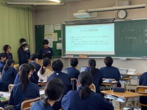 1年生は、明日の県内フィールドワークに向けての練習をクラスごとに行いました。グループごとに訪問先の企業さんから与えられた課題の解決策を考え、パワーポイントでプレゼンを作りました。今日は、実際にクラスの友人の前で発表の練習をして、スライドに修正を加えて準備をしました。
