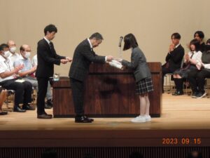 先日行われた『校内生活体験発表大会』の次の大会、『東信高等学校生徒生活体験発表大会』が佐久平交流センターで開催されました。東信地区の定時制・単位制・通信制の高校7校が参加し、各校の代表に選ばれた生徒14名が、それぞれの思いを込めて発表しました。聴いている人の多くが共感するハイレベルな発表の中で本校の代表2人も堂々と発表できました。トップバッターで登壇した滝沢さんは、多くの人が緊張してしまうところを冷静な様子で話し、荻久保さんも同様に、言葉一つひとつがしっかりと伝わるように落ち着いた口調で話しかけてくれました。東信から県大会へは3名という狭き門でしたが、東信の代表として荻久保さんが選ばれました。10月7日(土)に東御市のサンテラスホールで行われる県大会で再び語りかけてくれます。