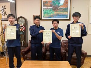 今回は男子が参加し、個人戦準優勝に2年生で班長の坂口さん、個人戦5位に1年生の長谷川さんが入賞し、団体戦では3位になったそうです。大会によって違うのだけれど、今回の大会は、個人戦の結果が団体戦に反映される方式で、入賞には至らなかったメンバーも含めて、みんなの頑張りが団体戦の結果につながったと話してくれました。