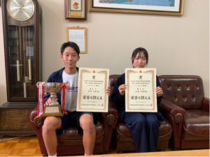 高等学校新人体育大会ハンドボール競技の東信大会が行われ、男女の班長さんが報告に来てくれました。