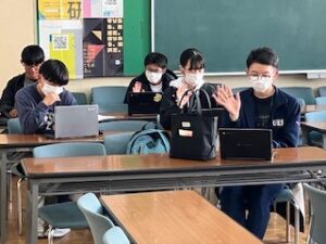 お知らせ 2023.11.29 お知らせ 11月17日(金)台湾の高校生とオンライン交流をしました。 校では、2年次に台湾へ行って、現地の高校生と交流する研修旅行を計画していましたが、本年度は残念ながら中止になったため、4校の台湾高級中学の生徒とオンラインで交流をしました。2年生全員が4人程度のグループに分かれて行いました。アイスブレイクでお互いの緊張をほぐしたあと、準備しておいた内容を発表しあったり、好きなタレントなどの話をしたりして盛り上がっていました。最初のうちは固い表情をしていた生徒も、徐々に表情を柔らかくして、英語でのコミュニケーションに挑戦し、みんなが画面の前に集まって記念撮影する場面もあり、オンラインではありましたが、異文化や海外への興味、英語学習への意欲が高まるよい交流になりました。 前の記事へ 一覧へ戻る 次の記事へ TOP すべてのお知らせ お知らせ 11月17日(金)台湾の高校生とオンライン交流をしました。