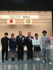 お知らせ 11月25日(土)うえわちゃ「上田市青少年善行表彰」受賞