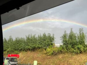 帰りの道中では、空一面にかかる虹に大興奮!2人の頑張りを祝福してくれました。