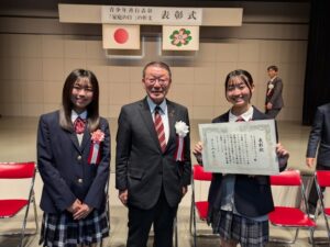 お知らせ 2024.12.18 お知らせ 「カンボジア井戸プロジェクト」上田市善行表彰を受賞 11月23日上田創造館において青少年善行表彰授賞式がおこなわれました。今回は、カンボジア井戸プロジェクトの活動が善行と認められ、受賞の対象となりました。井戸プロジェクトを体表して、上鹿渡ゆい(3年生)、甘利瑞希(3年生)の2名が授賞式に参加しました。井戸プロジェクトの隊員たちは、学校以外の方々から評価されたことはとても嬉しく、今後の活動の励みになり、活動に一層力を注ぎたいと語っていました。 前の記事へ 一覧へ戻る 次の記事へ TOP すべてのお知らせ お知らせ 「カンボジア井戸プロジェクト」上田市善行表彰を受賞